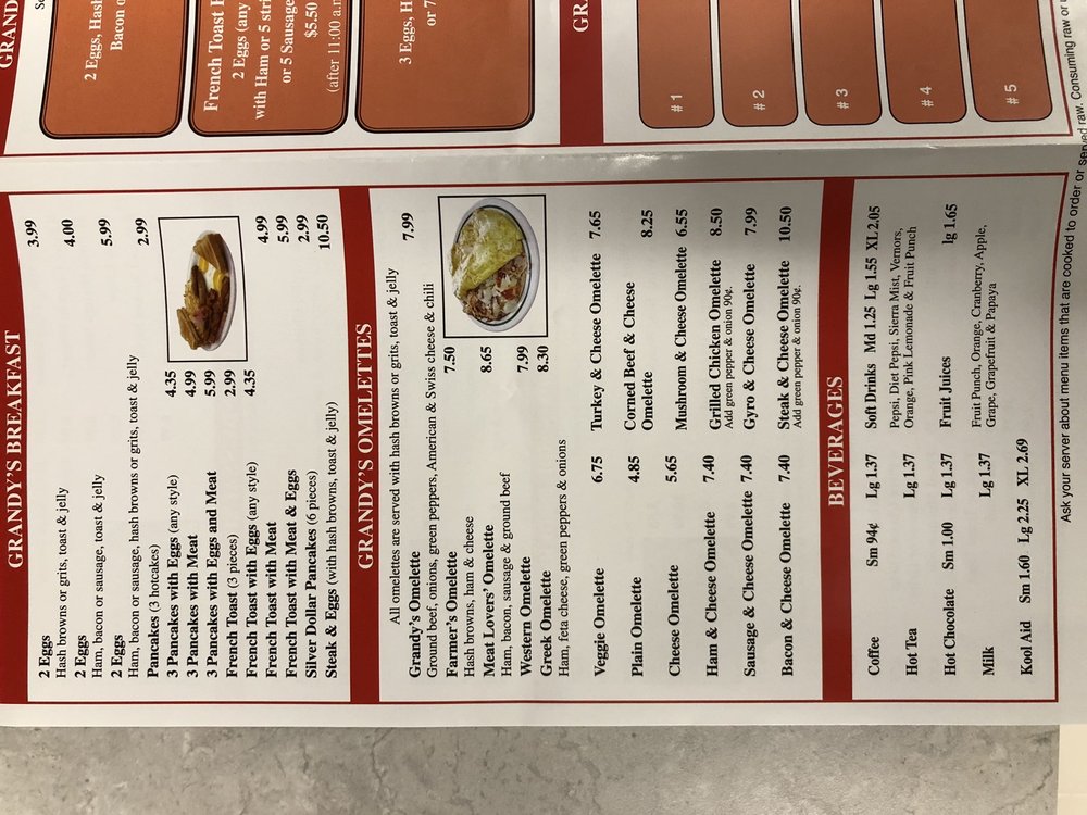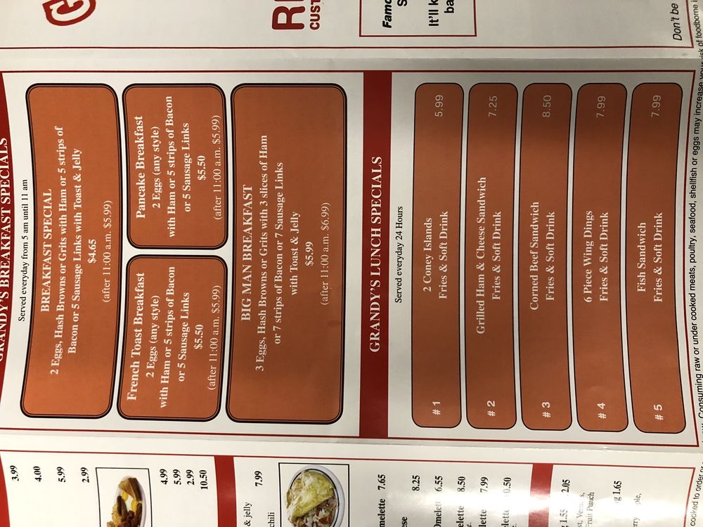 Grandys Coney Island Restaurant offers amenities such as Takeout, Delivery, Good for Kids, Parking, Outdoor Parking, Parking Lot, Accepts Credit Cards, ensuring a comfortable and convenient experience for clients.